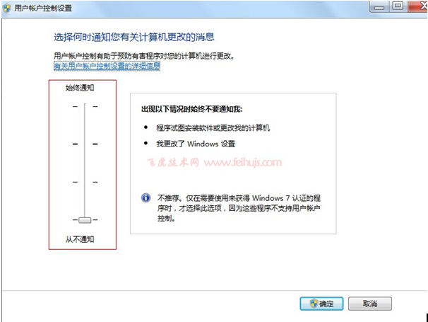 在用戶賬戶設置界面,把下圖紅色區域拖到最底,確定后,重啟電腦