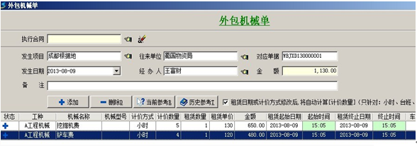 1. 【外包機械成本】一般用于統(tǒng)計工程中,租用的吊車、鏟車、挖機等大型機械設(shè)備所產(chǎn)生的成本。成本根據(jù)外包機械單來統(tǒng)計。