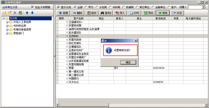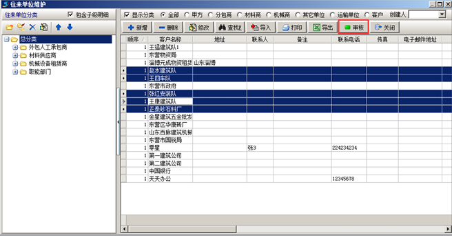 工程項目管理軟件基礎信息-往來單位維護(審核)