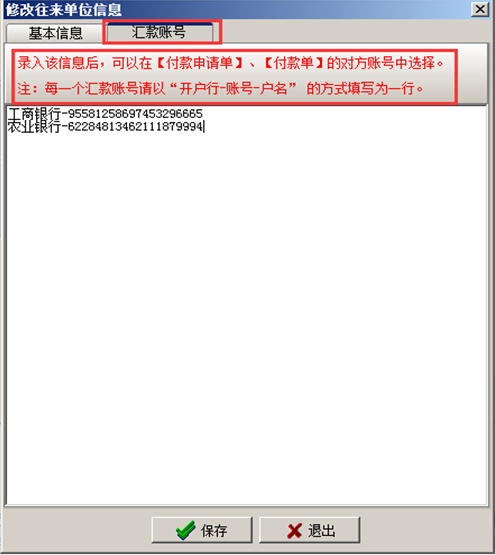 在進行收款或者付款的時候調用往來單位的匯款賬號,如圖: