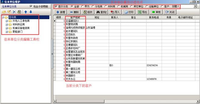往來單位信息可批量導入到系統中,具體操作細節參照文章“工程項目管理軟件基礎信息的批量導入”