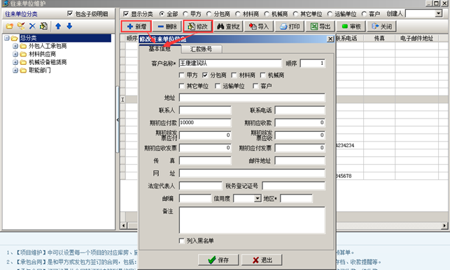 首頁 ? 學習中心 ? 期初設置 ? 工程項目管理軟件基礎信息-往來單位維護(審核) ?