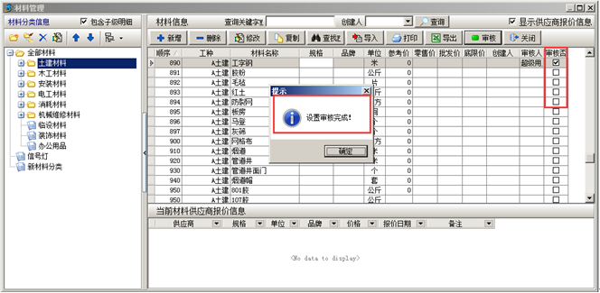 工程項目管理軟件中基礎信息—材料維護(審核)