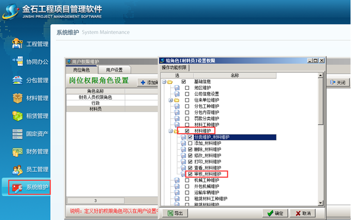 1、首先將 “審核_材料”的功能單獨分配給材料維護員一人。