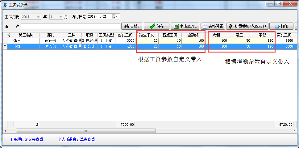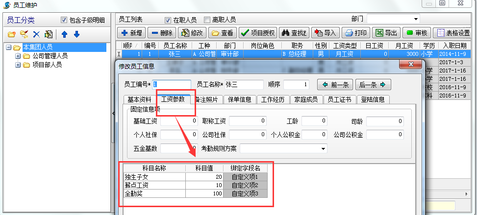 在工資表中我們已經(jīng)做了工資參數(shù),但往往因一些公司工資計算方式比較特殊導致不夠用,現(xiàn)增加了工資自定義功能用法如下