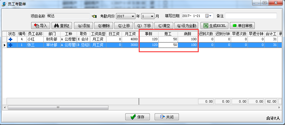 在考勤表中我們已經(jīng)做了考勤參數(shù),但往往因一些公司考勤方式比較特殊導致不夠用,現(xiàn)增加了考勤自定義功能用法如下: