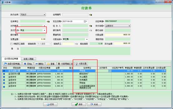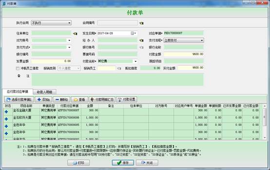 然后點擊付款,彈出付款申請單或付款單,如圖