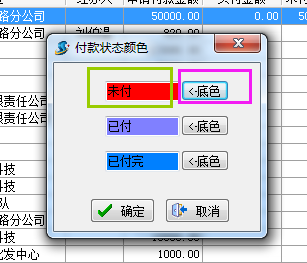 如下圖:點“未付”兩個字設(shè)置字體的顏色;點“底色”設(shè)置背景色