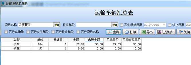 用戶也可以自由查詢成本的明細??梢圆樵儭具\輸車輛匯總表】。