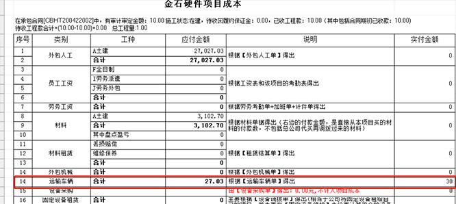 該表格【運輸車輛】的車型匯總,能夠查詢出某項目的運輸車輛成本。