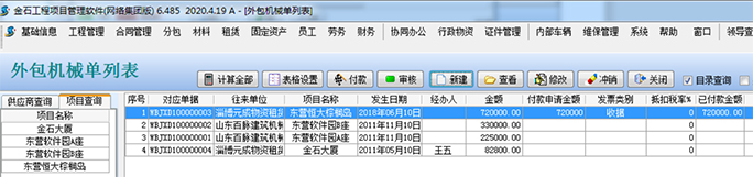 在填報了基礎信息之后,需要打開管理外包設備的基礎單據-【外包機械單】。
