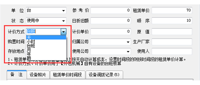 在我們之前于工程管理系統中填報設備的基礎信息時,有一項是填報計價方式和單價,這里是計算成本的基礎,一定要填報好。如果不希望計算成本,那么請在租賃單價中填0。