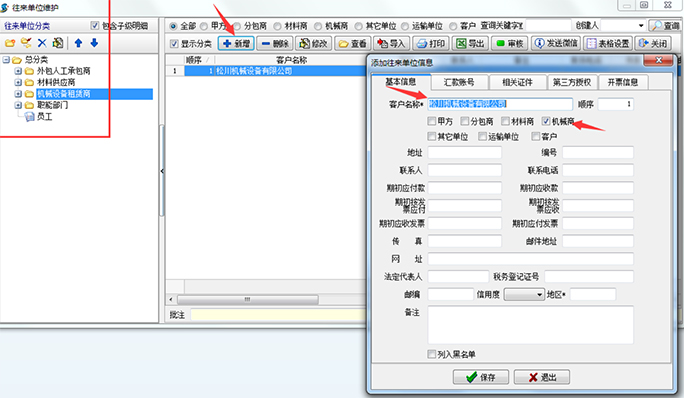 所謂的往來單位維護,主要將機械設備的供貨商信息錄入系統,方便以后進行維保、二次采購等操作。操作界面如下: