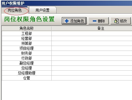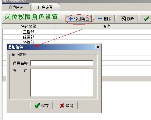 按【添加角色】按鈕,在彈出的窗口中設置崗位名稱及備注說明。