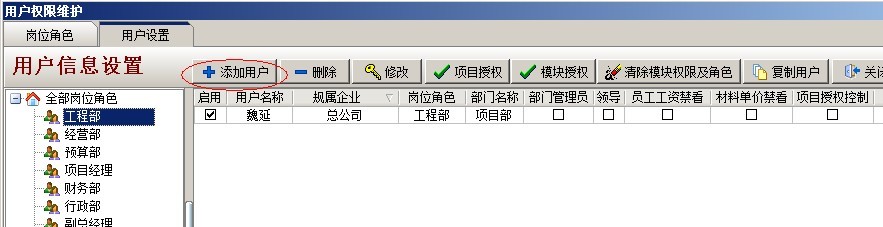 打開用戶權限設置后,首先設置【權限角色】,下圖所示: