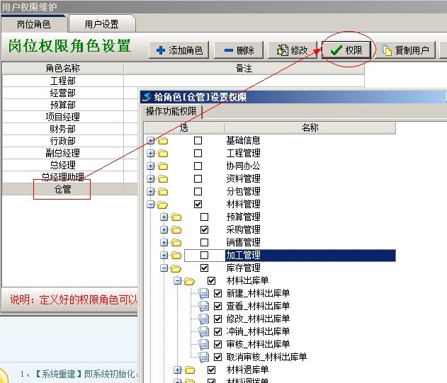 2、按崗位角色設置權限: