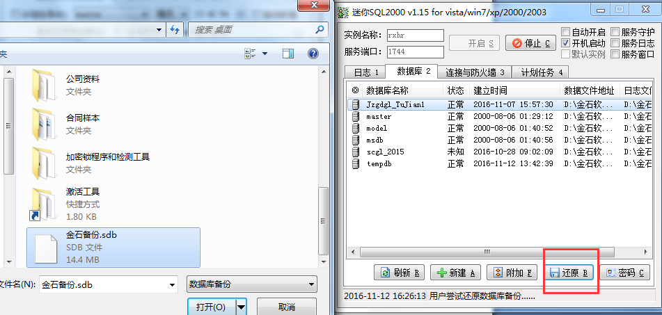 2.打開金石客戶端→連接設置,更改下數據庫名稱為我們還原的數據庫名稱Jzgdgl_TuJian2