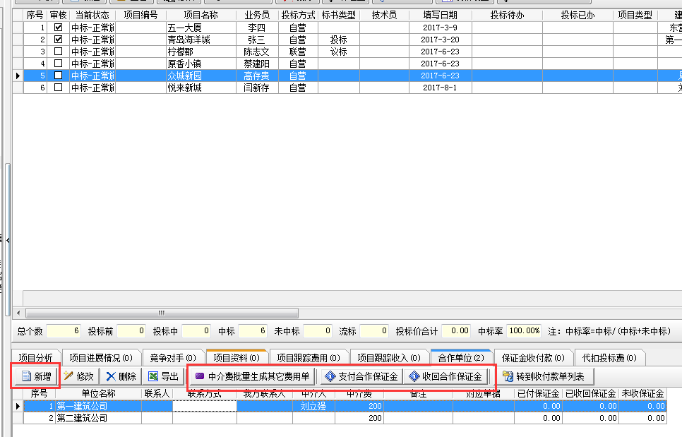 如果需要向各陪標(biāo)方支付陪標(biāo)費(fèi),或向介紹人支付介紹費(fèi) ,可通過(guò)【中介費(fèi)批量生成其它費(fèi)用單】來(lái)完成!