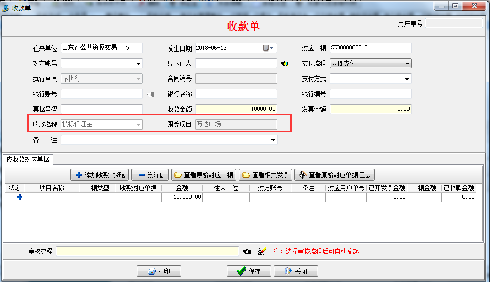 填對應收款單,輸入對應的收款金額,如圖: