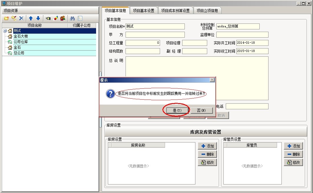 以公司的“市場部”或“銷售部”來進行前期費用的承擔。如果項目沒有中標,則前期跟蹤費用自然歸屬到該部門下,如果中標通過在工程項目管理軟件【項目維護】中新建項目,從項目開拓中引入,并確認結轉費用即可。