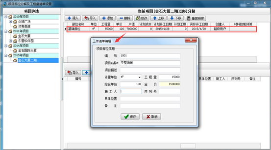 點(diǎn)當(dāng)前部位的工程量清單設(shè)置下面的“添加”按鈕,在彈出工作清單編輯窗口,依次錄入內(nèi)容,然后保存。