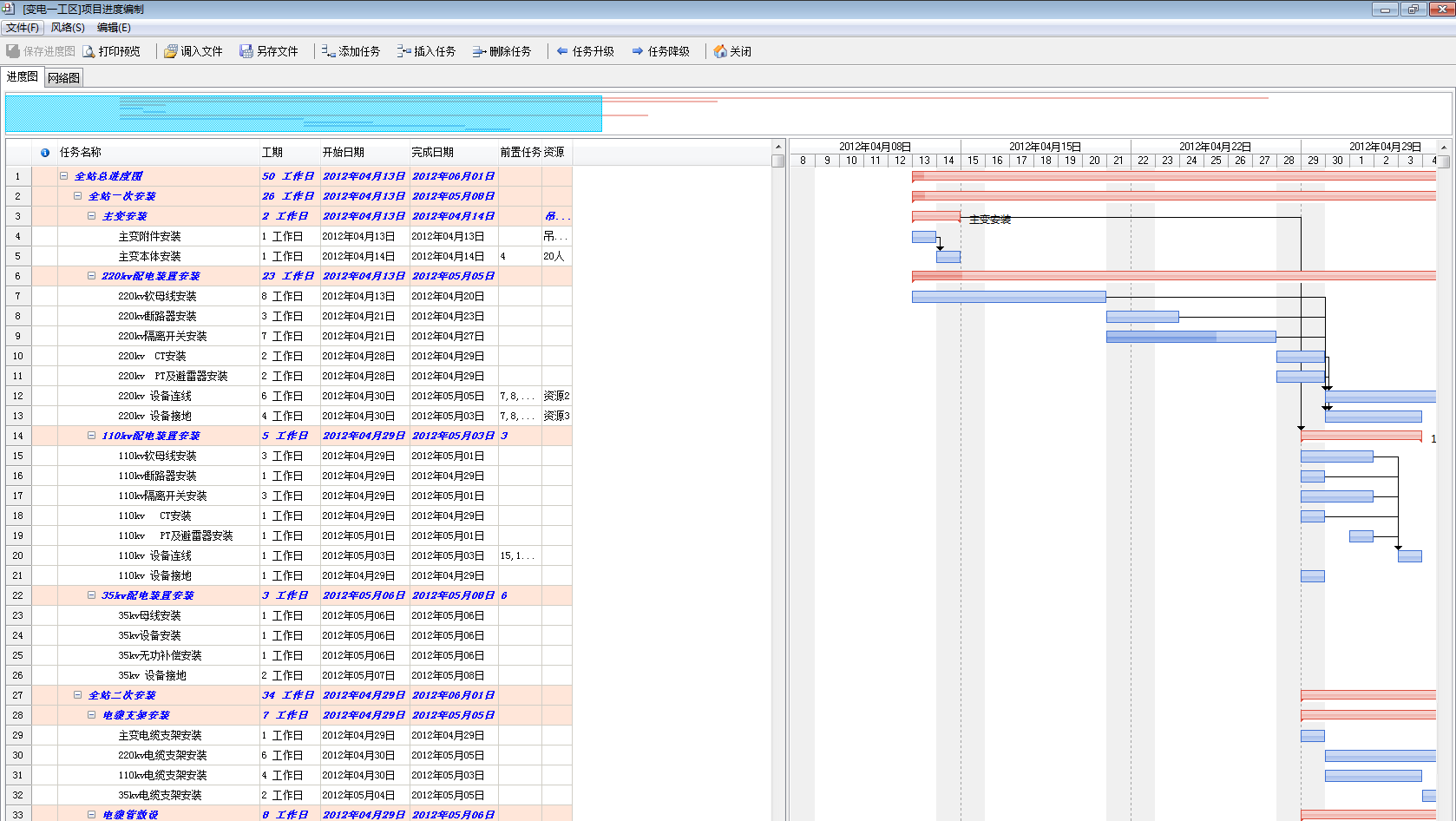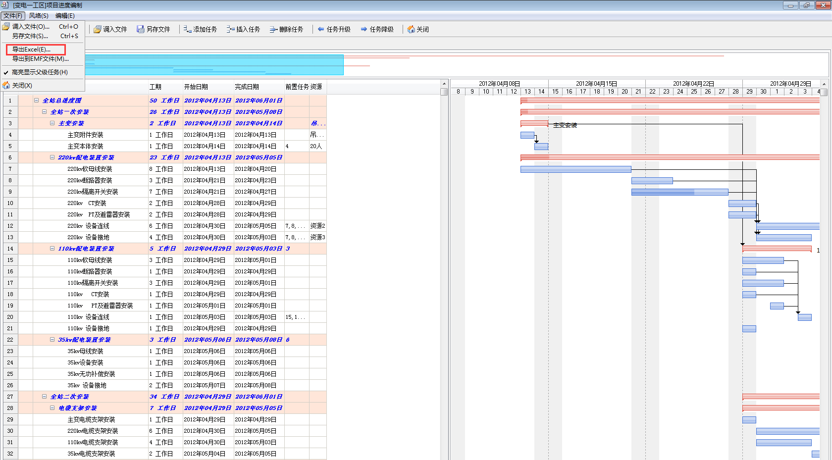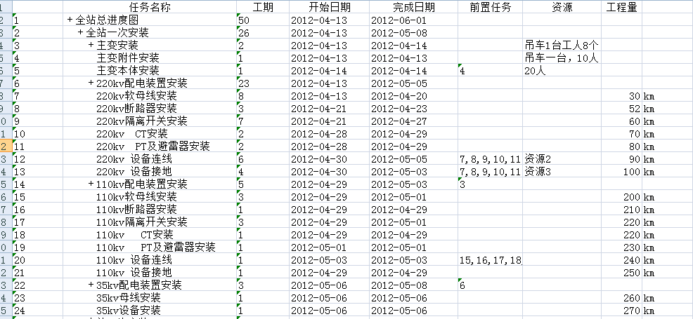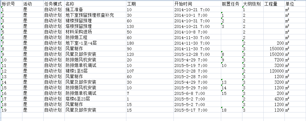 2. 來自項目管理軟件【任務圖編制】導出的excel