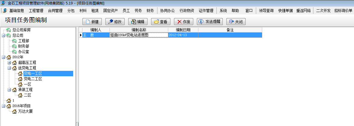 打開【工程管理】-【任務圖編制】如下圖