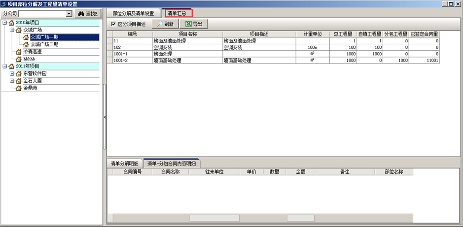 三、工程量清單匯總以及工程量進(jìn)度查詢