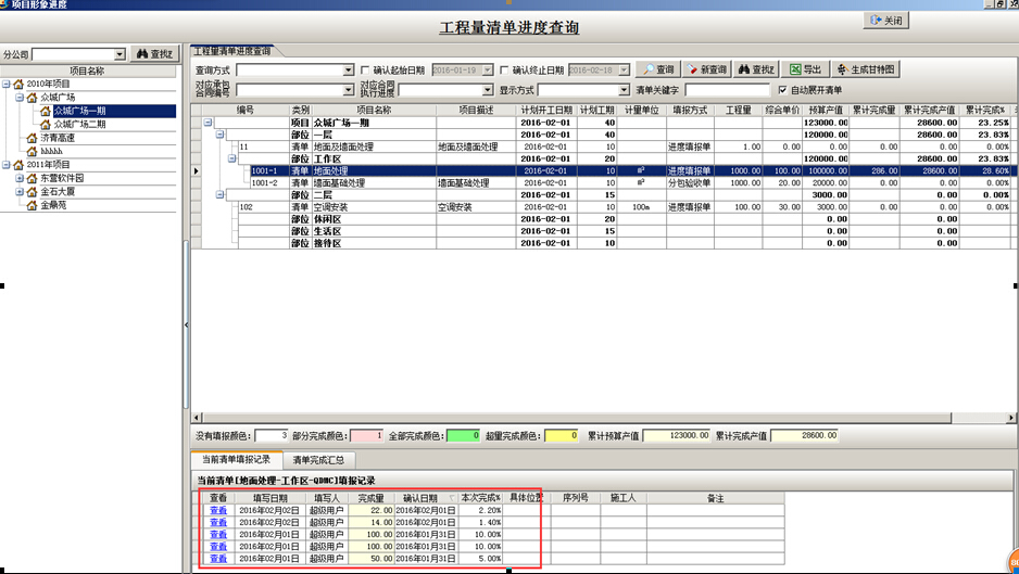 2、工程量清單進(jìn)度查詢