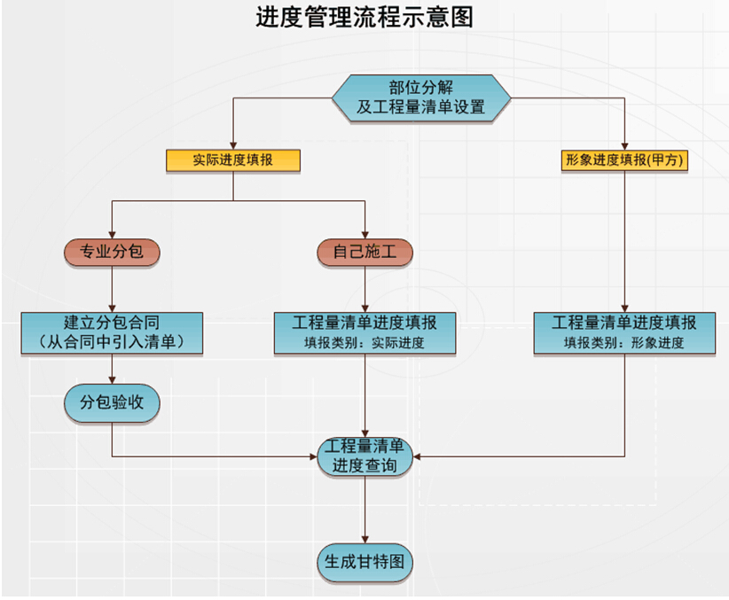 項目進度查詢時,系統會根據項目部分以及工程量清單匯總項目進度。如圖: