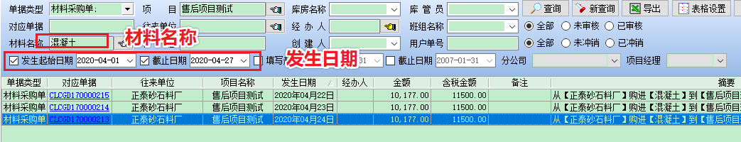 第一步,先通過篩選功能把要批量修改的材料篩選出來,注意發生日期
