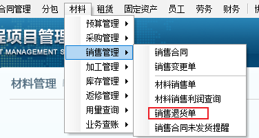 金石工程管理軟件新增:銷售退貨單