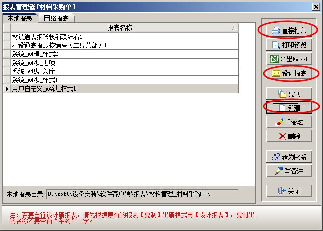 1. 鼠標單擊打印按鈕,彈出報表管理器,如需打印,選擇列表中已設計好的報表【點直接打印】按鈕即可。如需修改報表,選中報表后點【設計報表】按鈕即可。