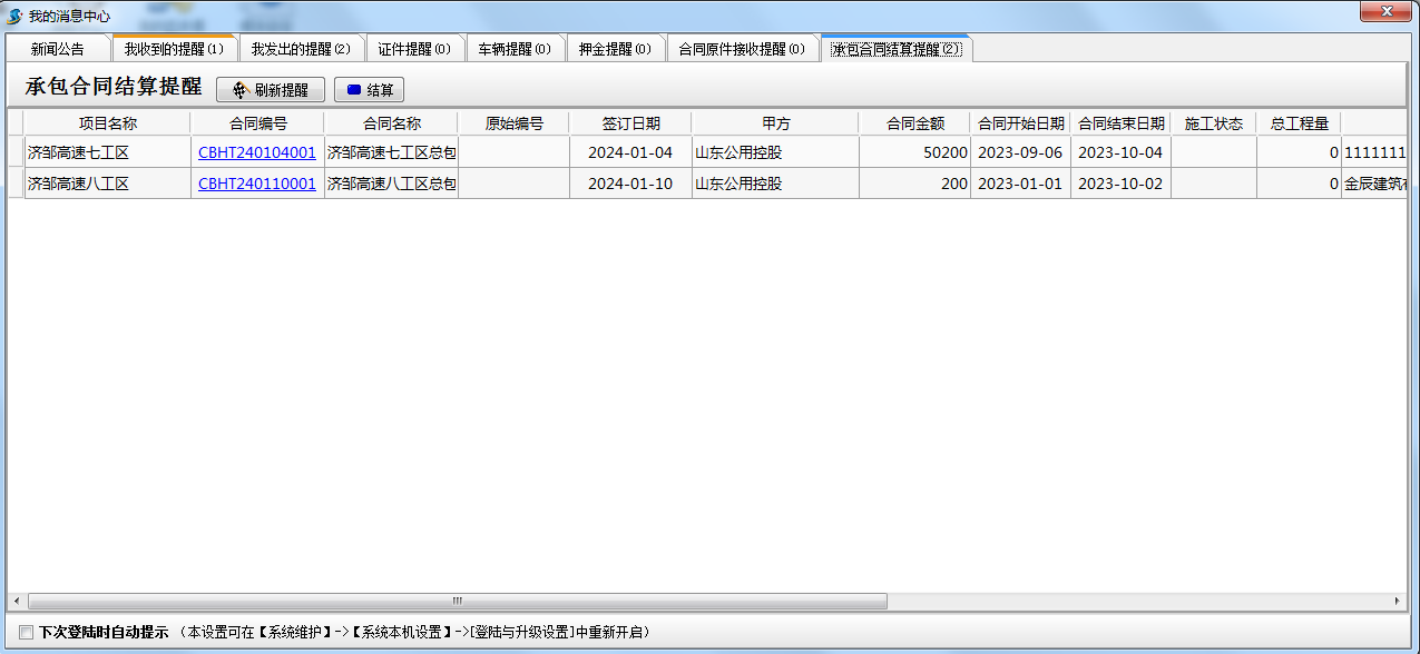 金石軟件新增項目結算提醒功能