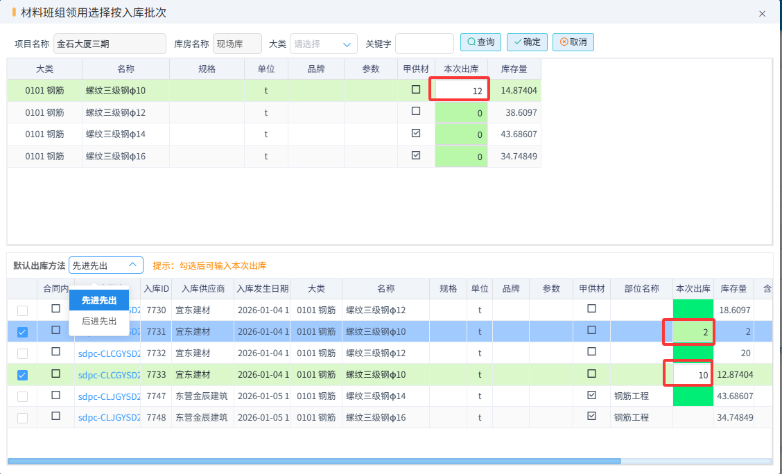 供應(yīng)商送貨完成填寫材料采購(gòu)驗(yàn)收單,可以選擇直進(jìn)項(xiàng)目和采購(gòu)入庫(kù)。如果選擇采購(gòu)入庫(kù)就自動(dòng)進(jìn)入庫(kù)存。項(xiàng)目上領(lǐng)用材料可以填寫材料領(lǐng)用申請(qǐng)單