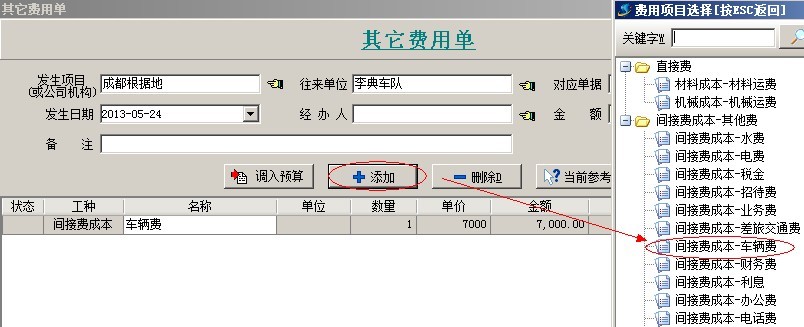 另外,費用科目維護中的的各項科目,僅使用在其他費用單和其他收入單中,所產生的成本是屬于其他費用產本。(其他收入單不產生成本)如下圖: