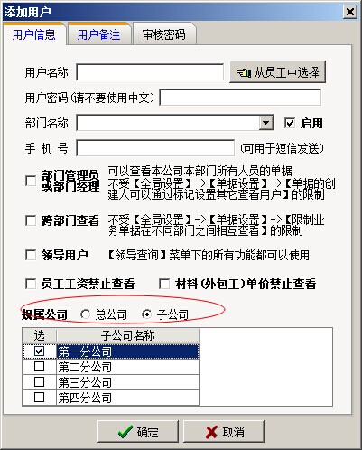 B:公司授權(quán)判斷,是指判斷當(dāng)前用戶是屬于總公司還是子公司,如果屬于子公司,判斷當(dāng)子公司是否有項(xiàng)目授權(quán)。用戶所屬公司的設(shè)置和子公司項(xiàng)目授權(quán)的設(shè)置如下圖: