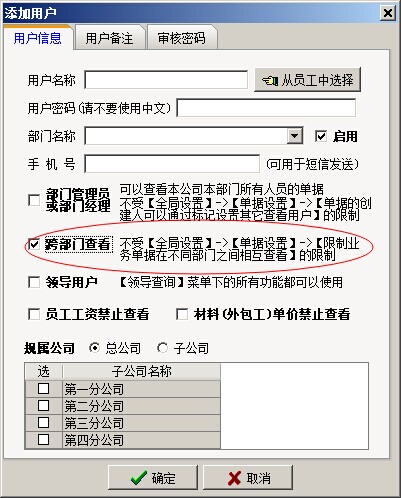 如果,【限制業(yè)務(wù)單據(jù)在不同部門的相互查看】這個(gè)開關(guān)開啟,那么與單據(jù)創(chuàng)人部門不同的用戶(多級(jí)審核單據(jù)中審核人不受限),就是無(wú)法看到該業(yè)務(wù)單據(jù)。判斷是否與單據(jù)創(chuàng)建人部門相同,是看用戶列表中的部門項(xiàng)。如下圖: