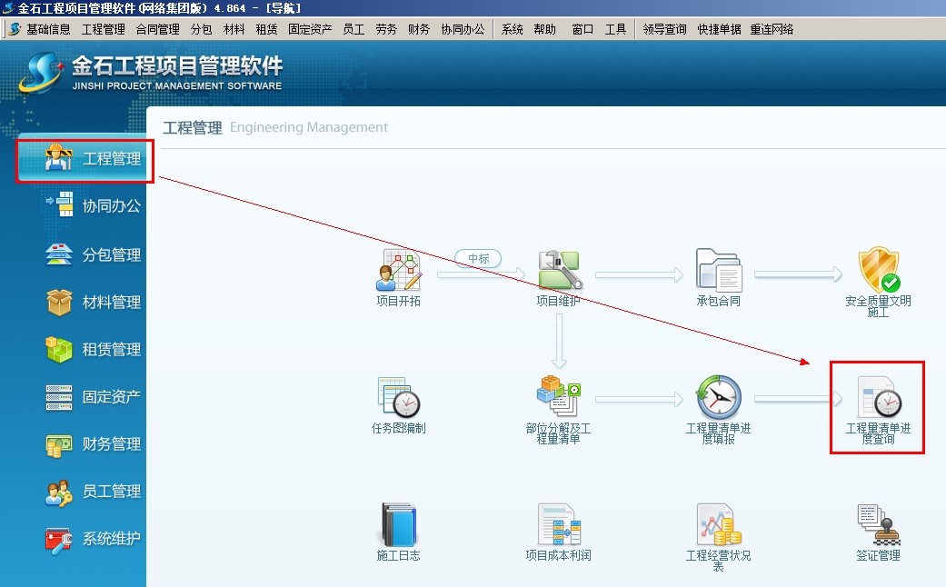 選中相應的項目,點查詢,查看工程量清單進度